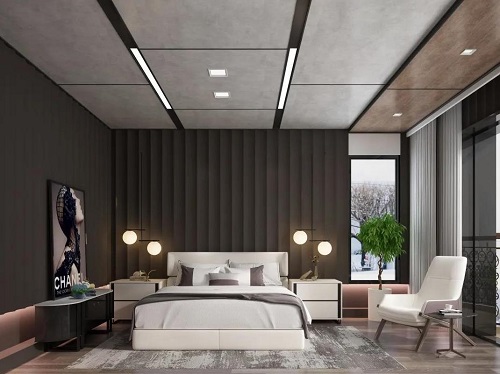 天然居全鋁大板吊頂為空間創造出的層次感,讓小小的次臥變得溫暖有趣。墻面盡量以淺色為主,如淺灰色、象牙白色都是不錯的選擇。