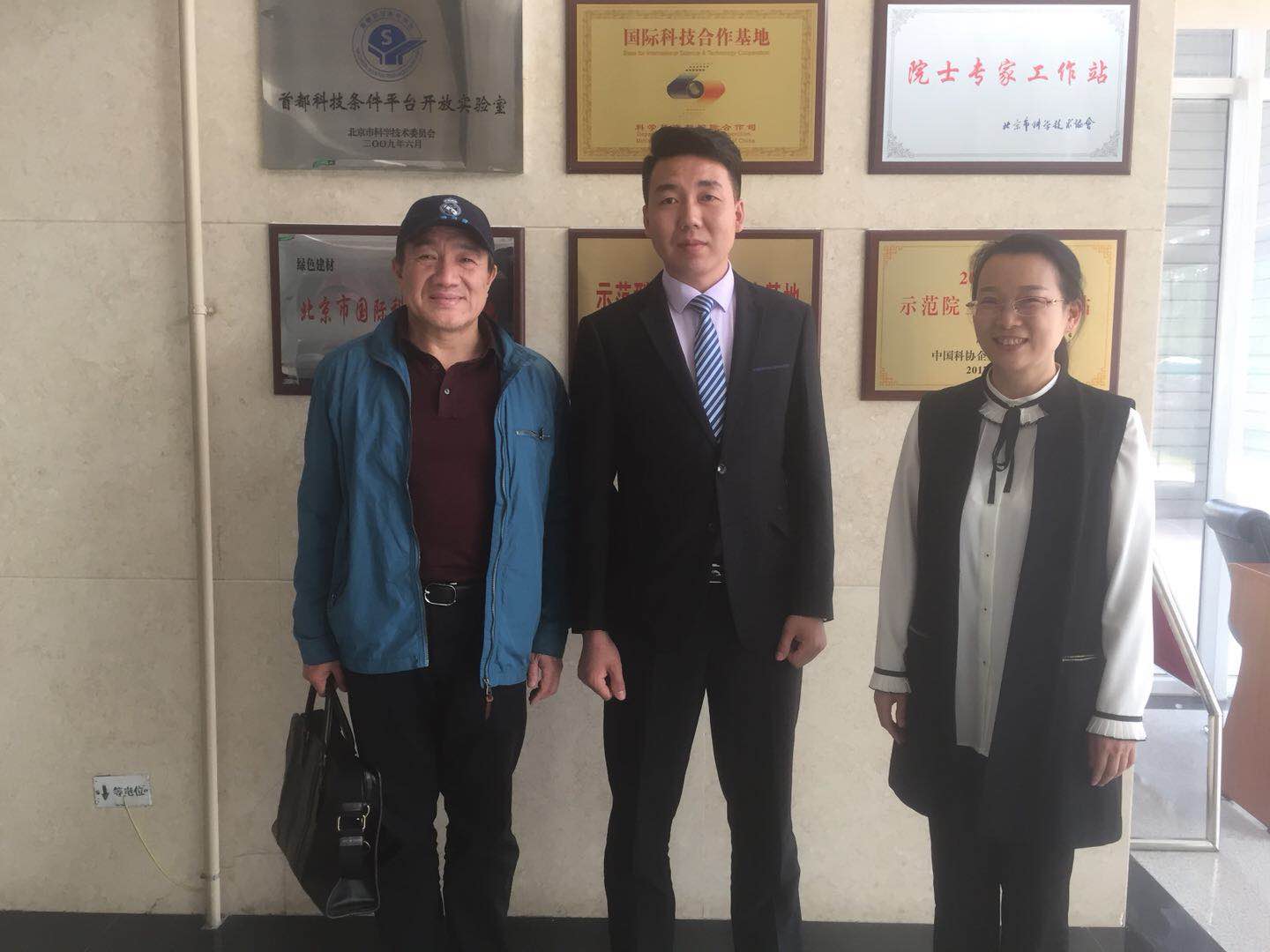 天居硅藻泥技術(shù)總監(jiān)唐晶晶(中)與黃白、王靜教授合影