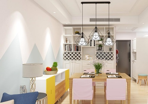餐廳設(shè)計比較有濃濃的清新感,白色的餐邊柜,各種綠植花卉點(diǎn)綴,搭配原木系餐桌椅,仿佛身處自然界中,清新自然,讓業(yè)主的每一餐都能沉浸在藍(lán)天白云之中。