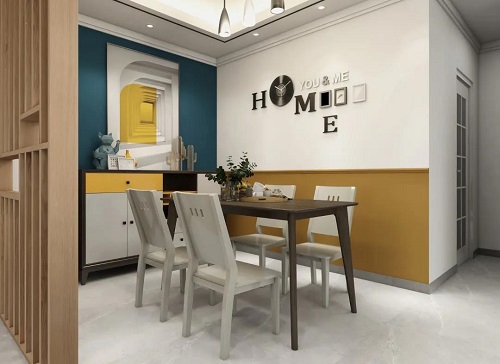 客餐廳緊靠在一起,用隔斷劃分兩個區域,增加兩個空間的隱私感。